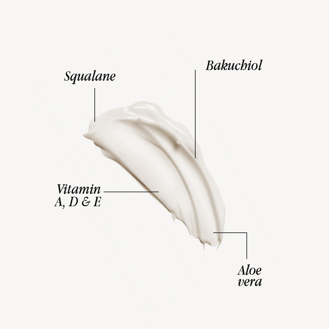 Water, Coco Caprylate/Caprate, Dihydroxyacetone, Prunus Amygdalus Dulcis (Sweet Almond) Oil, Hydroxyethyl Acrylate/Sodium Acryloyldimethyl Taurate copolymer, Isohexadecane, Polysorbate 60, Propanediol, Phenethyl Alcohol, Undecyl Alcohol, Tocopherol, Polycitronellol Acetate, Cetyl Alcohol, Glycerin, Pyrus Malus (Apple) Fruit Extract, Sodium Benzoate, Potassium Sorbate, C14-22 Alcohols, C12-20 Alkyl Glucoside, Persea Gratissima (Avocado) Oil, squalane, Theobroma Cacao (Cocoa) Seed butter, Butyrospermum Parkii (Shea) Butter, Passiflora (Passion Fruit) Edulis seed Oil, Butylene Glycol, Globularia Sordifolia Sallus Sulture Extract, Zingiber Zerumbet Extract, Caffeine, Sodium Stearyol Glutamate, Bakuchiol, Vitamin A, D, E, Aloe Barbadensis Leaf Juice, Fragrance.